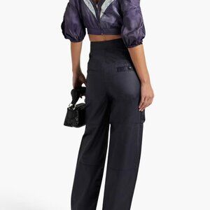 Elevate your look with this ISABEL MARANT “Berit” cold-shoulder cropped satin top — a chic, statement-making piece in a rich Grape hue. Designed with printed trims, tied cuffs, and a concealed zip closure, this top embodies the effortless Parisian elegance Isabel Marant is known for. Crafted from 100% viscose satin, the mid-weight, non-stretchy fabric drapes beautifully and catches the light for a subtle, luxurious sheen.