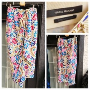 cream/multicolour silk all-over floral print pinched detailing high waist high-low hem
