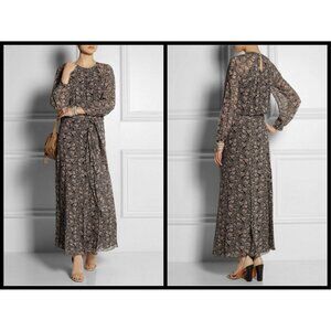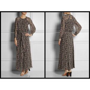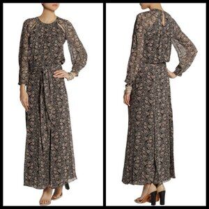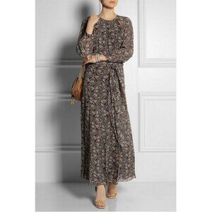 💕ISABEL MARANT💕 Drecious Printed Georgette Maxi Dress Mushroom Bird Floral 42