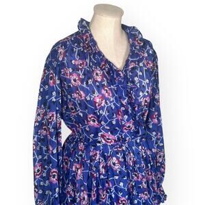 ISABEL MARANT ETOILE Maelys Wrap Midi Dress Floral Blue Ruffle Tapestry Wedding