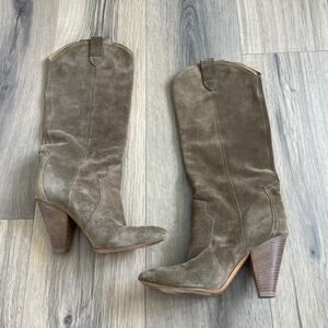 ISABEL MARANT ETOILE Ruth Western Heeled Boot Khaki Suede Size 39 Slouchy Boots