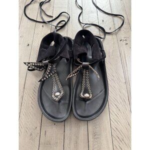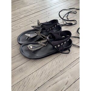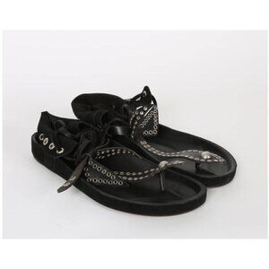 ISABEL MARANT Edris Black Studded Leather Suede Bow Tie Up Sandals Size 40 10