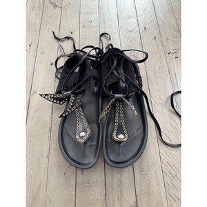 ISABEL MARANT Edris Black Studded Leather Bow Tie Up Sandals Size 40 10