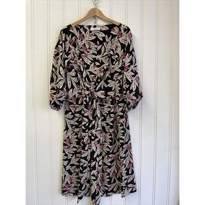 Leafy vines laden with blushing blooms pattern this drapey dress finished with a self-tie belt at the waist for definition. Boat neck. Bracelet-length sleeves. Unlined.