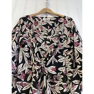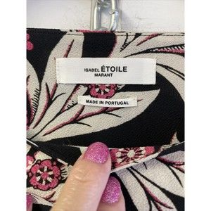 ISABEL MARANT Etoile Black Pink Floral Print Lisa Front Tie Wrap Mid Dress 36 S