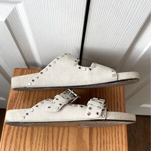 ISABEL MARANT Lennyo Chalk White Suede Studded 2-Strap Buckle Slide Sandals SZ41