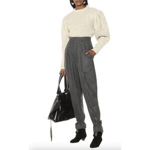 ISABEL MARANT Racomi 100% Virgin Wool Tapered High Rise Pants in Gray Size L