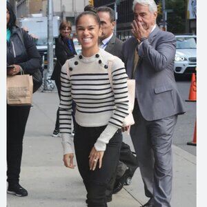 ISABEL MARANT Runway "Hatfield" Stripe Wool Sweater Navy 2025 Misty Copeland