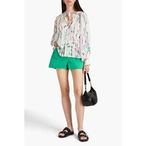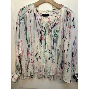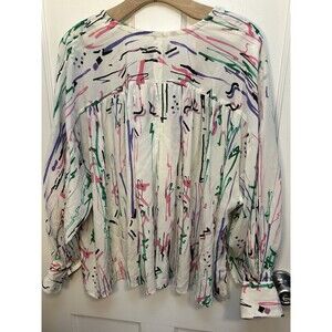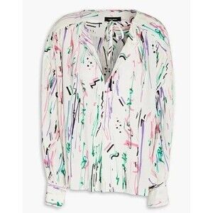 ISABEL MARANT Silk Amba Blouse Lightweight Top Sz 40 / 8 Ecru Printed Split Neck