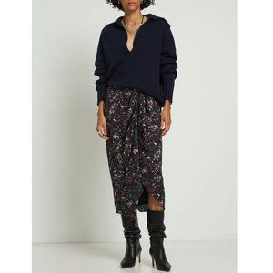 ISABEL MARANT ÉTOILE Berthe Floral Satin Midi-skirt In Nero Sz FR42/US10