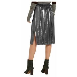 ISABEL MARANT ÉTOILE Madlen Pleat Lamé Midi Skirt Silver Net-A-Porter L NWT $405