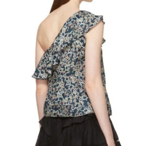ISABEL MARANT ÉTOILE Thom One-Shoulder floral Printed Blouse Top linen small XS