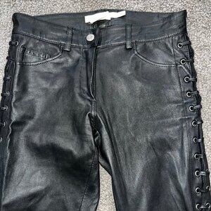 ISABEL MARANT X H&M BLACK NAPPA LEATHER LACE UP LEG MOTO TROUSER PANT EUC 2