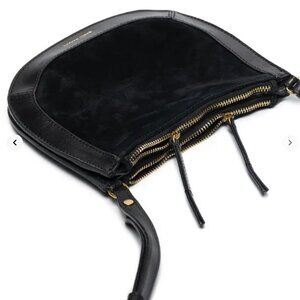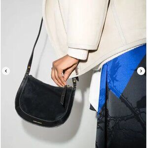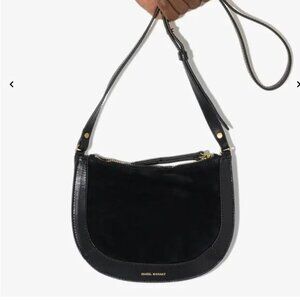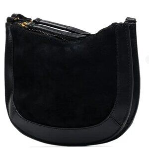 Black suede/leather small Muho shoulder bag from ISABEL MARANT featuring logo stamp to the front, leather trim, adjustable shoulder strap and double zip fastening.