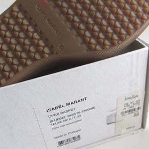 Women's taupe ISABEL MARANT ( Style: Bluebel BK0016 - 13A009S ) high-top wedge sneakers with calf velvet leather upper, pinked edges, three eyelets lace-up front, grip strap, round-toe, tonal stitching throughout, padded leather insole and rubber sole for traction. Made In Portugal. SIZE: 39 ( Marant )( marked ) or 9 ( US ). CONDITION: New with box ( box lid is just missing ). Note: Display item in department store.