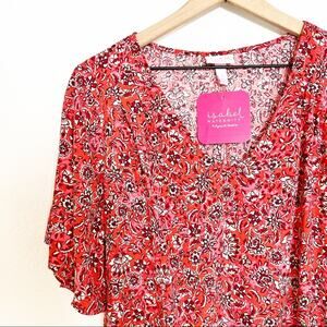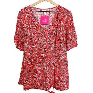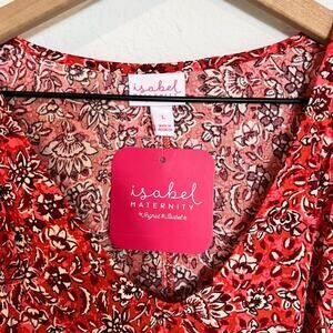ISABEL MATERNITY BY INGRID AND ISABEL LARGE RED PINK WHITE WOMEN BLOUSE NEW