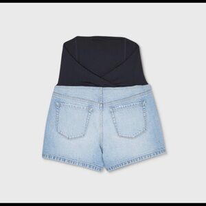 ISABEL MATERNITY CROSSOVER PANEL LIGHT WASH DENIM 4” SHORTS NEW WITH TAGS SIZE 2 ABOUT SHORTS IN PHOTO