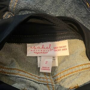 ISABEL MATERNITY Crossover Panel Over Belly Midi Jean Shorts 2