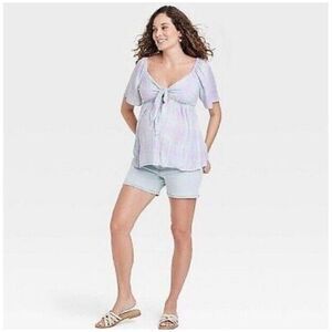 ISABEL MATERNITY Ingrid & Isabel Pastel Plaid Peekaboo Tie-Front Top NWT Easter