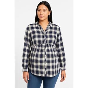 ISABEL MATERNITY Plaid Long Sleeve Button Down Empire Waist Flowy Blouse Size M