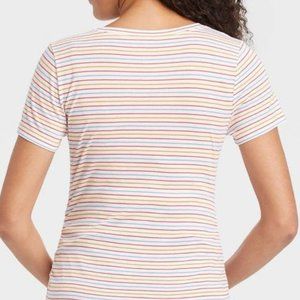 This super soft, short-sleeve maternity tee has just the right amount of side shirring to accommodate a growing bump. So comfy you'll want to wear it every day. Throughout your pregnancy, you'll reach for this top to pair with jeans, joggers, skirts, or any bottoms. A staple piece that provides easy, effortless comfort and style.