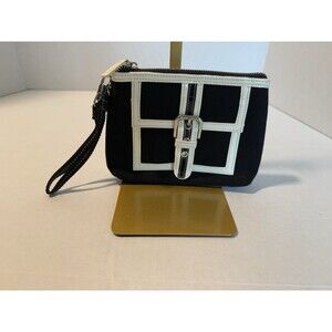 ISABELLA FIORE Buckle Black Durable Nylon W/ White Patent Leather Small Wristlet