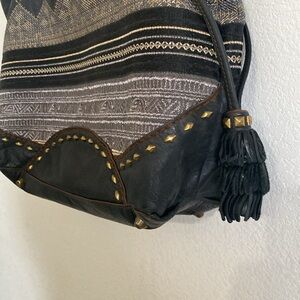 ISABELLA FIORE Studded Soft Thick Black Leather with Gold Silver Fabric Bag