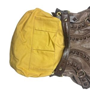 ISABELLA FIORE Women Brown Leather Gold hardware studded Boho shoulder bag Purs