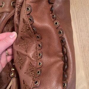 ISABELLA Fiore Brown Leather Embroidered Satchel Crossbody Shoulder Bag Purse
