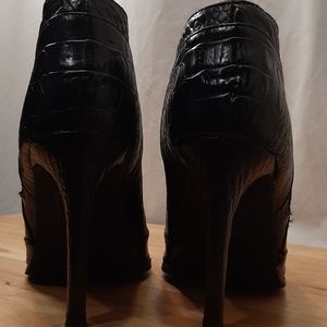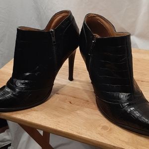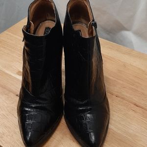 ISABELLA RUE black faux croc skin ankle boot with side zip. 4 inch heel