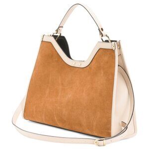contrast trim, detachable zip pouch, top carry handle, detachable adjustable shoulder strap, stud accents, convertible style