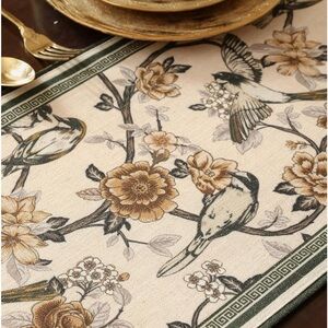 ISAENNE Designer Vintage Beige Linen Table Runner 71 Inches Long,Elegant Floral and Bird Pattern Decor Table Runners for Dining Tables,Thanksgiving,Christmas,Banquet,Party,12"*71"