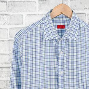ISAIA Napoli Men's Button up Dress Shirt in Blue gren check cotton size 16 1/2