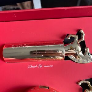 Giddyup, gleam. DAZZLE UP is a moisture-boosting highlighter injected with glistening pearls. A sunshower for your skin; an instant touch of light. Sweat, shine, and soft fluorescence. Infused with skin-conditioning ingredients like shea butter, jojoba oil, and retinol-mimicking alfalfa complex to improve skin elasticity over time. A remedy for tired, dull, and overworked complexions. Swipe onto cheekbones, above cupid’s bow, or anywhere else for a healthy, luminous sheen.