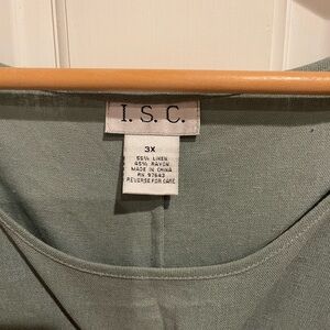 I.S.C. Linen Blend Mossy Green Embellished Sleeveless Tank and Blouse Comb 3X