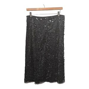ISDA & Co. Sheer Black Mesh Silk Lined Sequin Midi Skirt, Size 10