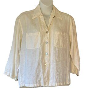 ISDA and Co Linen Shirt Women's Button Down Ivory Color Mother of Pearl Buttons