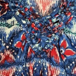 Isela Tank Top. Size Large. Beautiful braided detail around the neck. Gorgeous colors of royal blue, red, light turquoise & white. Great Pre-owned condition.