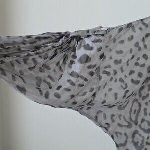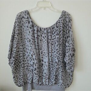 ISILK | 100% silk Blouse Sheer Domain Sleeves Leopard Print Gray Sz L