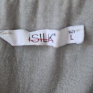 Selling ISILK | 100% silk Blouse Sheer Domain Sleeves Leopard Print Gray Sz L.