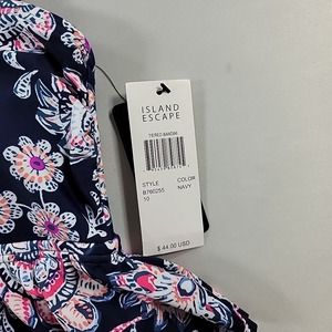 ISLAND ESCAPE Bandini Swimsuit Top Womens 10 Navy Floral Stretch Removable Cups