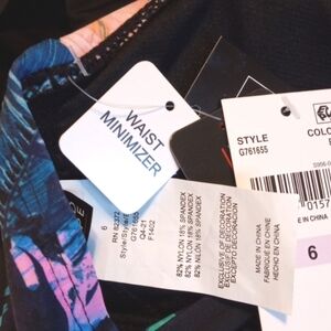 MACY'S ISLAND ESCAPE THREE TIERED TANKINI SWIM TOP Black Blue Floral Removable/Adjustable Shoulder Straps Removable Bra Cup Pads Tankini Swim Top Size 6 NWT
