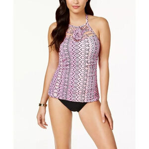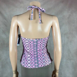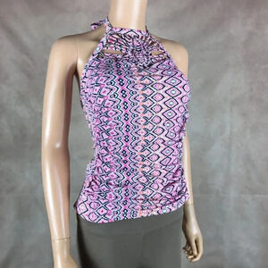 ISLAND ESCAPE Macramé Diamond Print Halter Tankini Top NWT 6