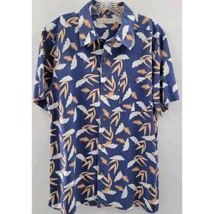 ISLAND REPUBLIC Men's Hawaiian Shirt Size L Leaf Print Cotton / Rayon Blend