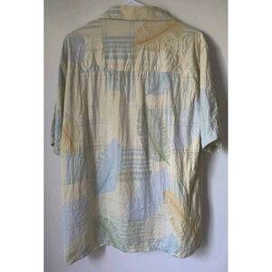 ISLAND REPUBLIC Men's Short Sleeve Button Down Silk Blend Yellow Leaf Shirt XL