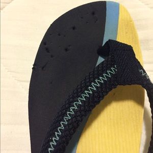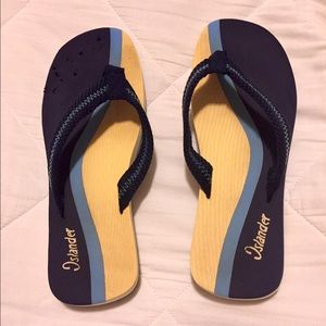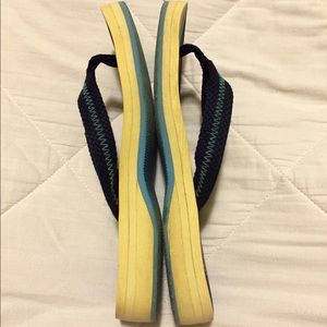 Pre-owned, in very good condition, Original Brand imported from Philippines. The Islander features a thong strap and thick multi-layered sole for comfort. Colors: Navy Blue/Light blue/Cream. Normal Signs of wear on the outer soles( picture3), a few pet bite marks on the upper left side insole of Left Slipper(picture 4) and outer soles. No box, no rips, no tears, no stains, no odor. Size 6.