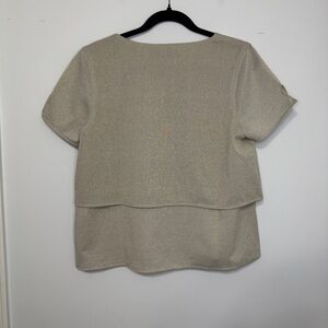 ISLE top, Melis Kozan, shimmer blouse, metallic layered top, dressy neutral top, party top, new with tags, holiday outfit, modern elegant blouse, Jumanji collection