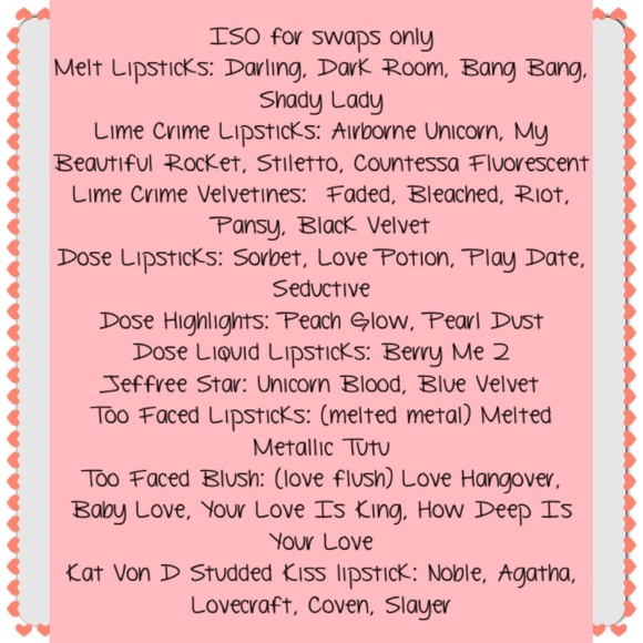 Looking for these items, must have feedback and live in the U.S. If you have anything on the list- What are you looking for swap-wise? :)