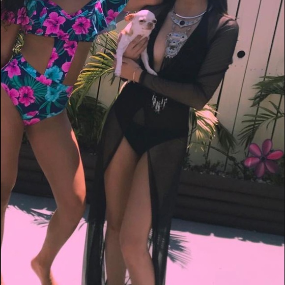 the black one piece swimsuit with lace/mesh dress over it. not sure what brand it is but i really really like it!❤️