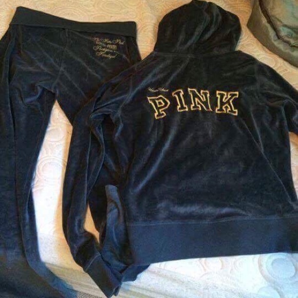 I have a black velour VS PINK track suit,sweatshirt is a medium and pants are a XS.. check it out!😊❤️👍